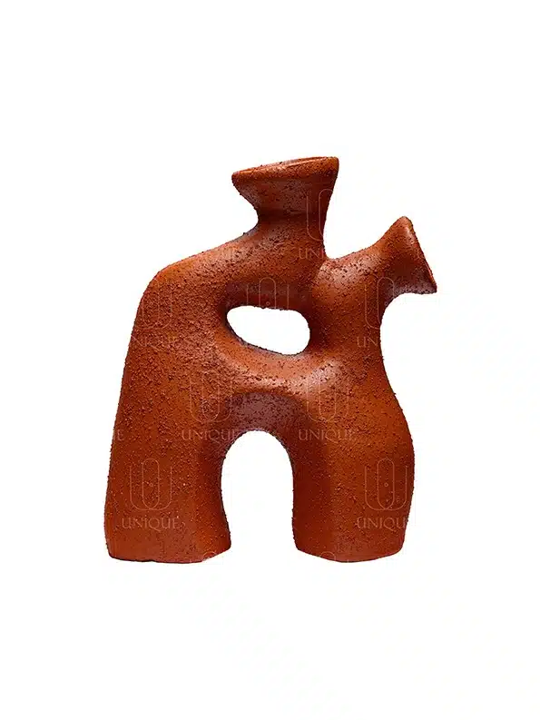 A captivating contemporary sculptural art piece, inspired by intertwining organic forms and evoking the essence of ancient artifacts or modern totems. It features a bold, abstract silhouette composed of flowing curves and dramatic openings, rising from a solid base into branching, ascending forms that culminate in top openings. The textured, granular surface enhances its earthy and artistic presence, blending authenticity with contemporary sophistication. More than just a vase, this piece is a standalone work of art—perfect for adding bold artistic expression and a striking sculptural presence to any interior setting