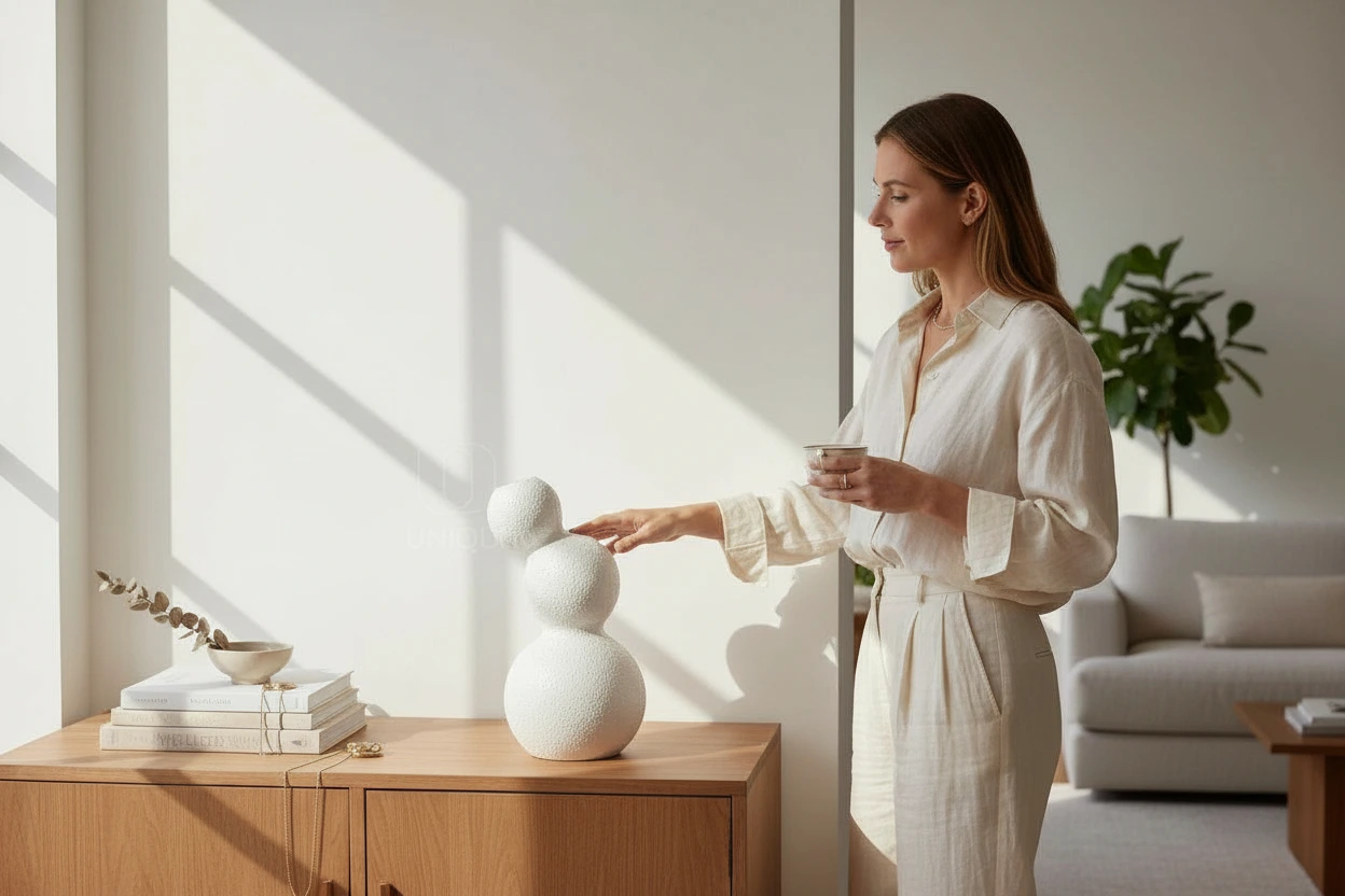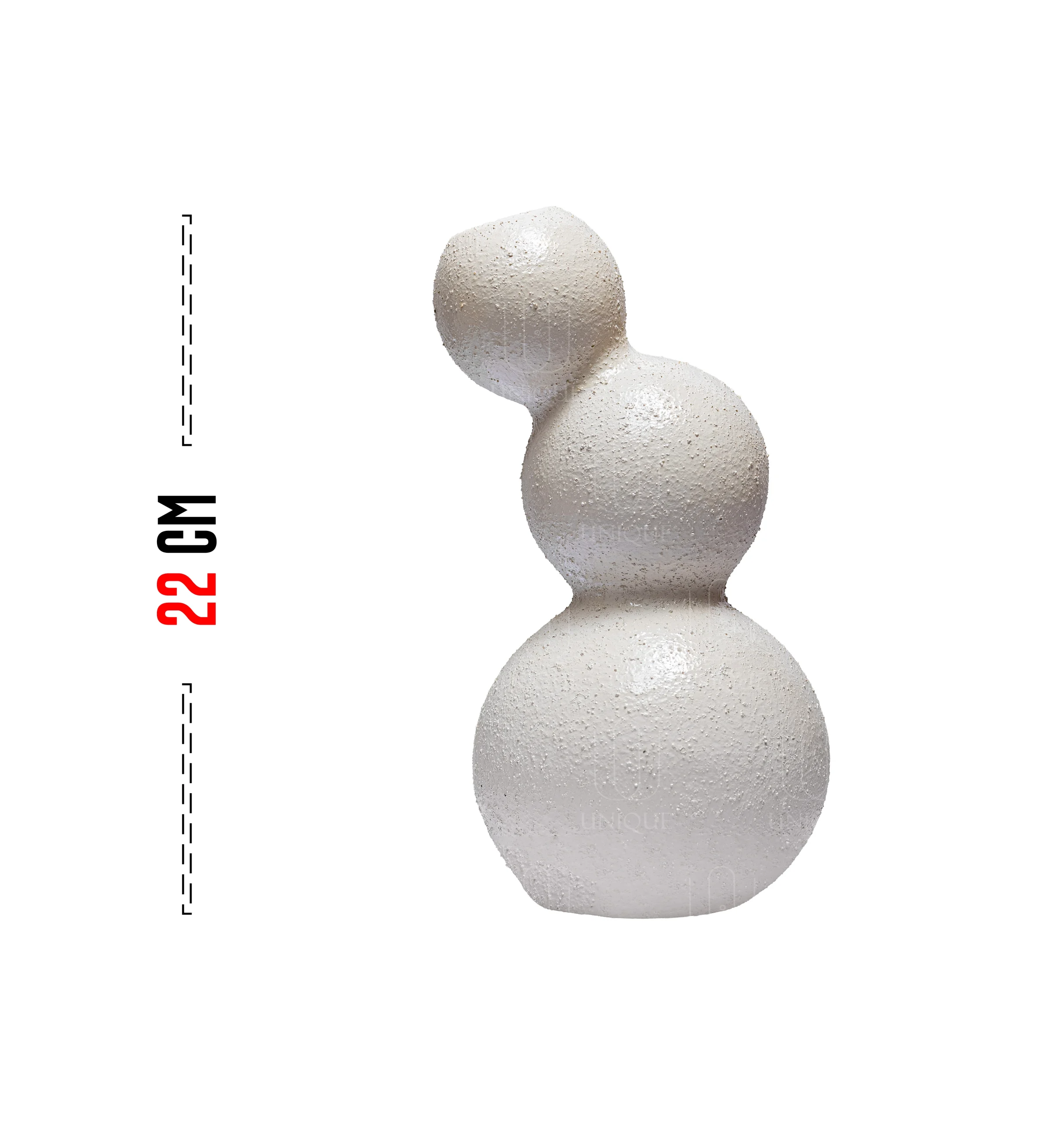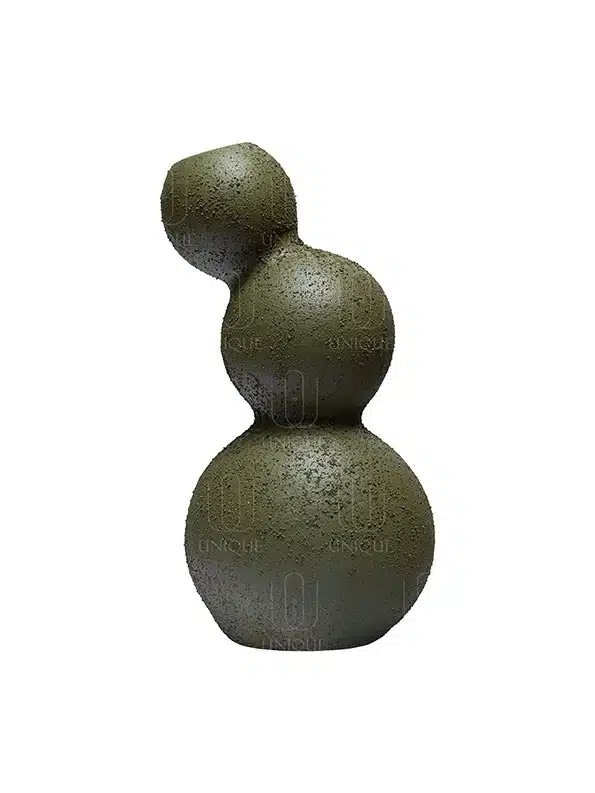 A captivating contemporary art vase with a sculptural design inspired by stacked organic forms, evoking the shape of a snowman or carefully balanced pebbles. It features three gradually sized spherical or semi-spherical sections, with the top subtly tilted to convey a sense of movement and fluidity. The textured, granular surface adds depth and artistic character, blending minimalism with creative expression. More than a vase, this piece serves as a modern sculptural statement, ideal for introducing a sense of calm sophistication and unconventional charm to any interior setting.