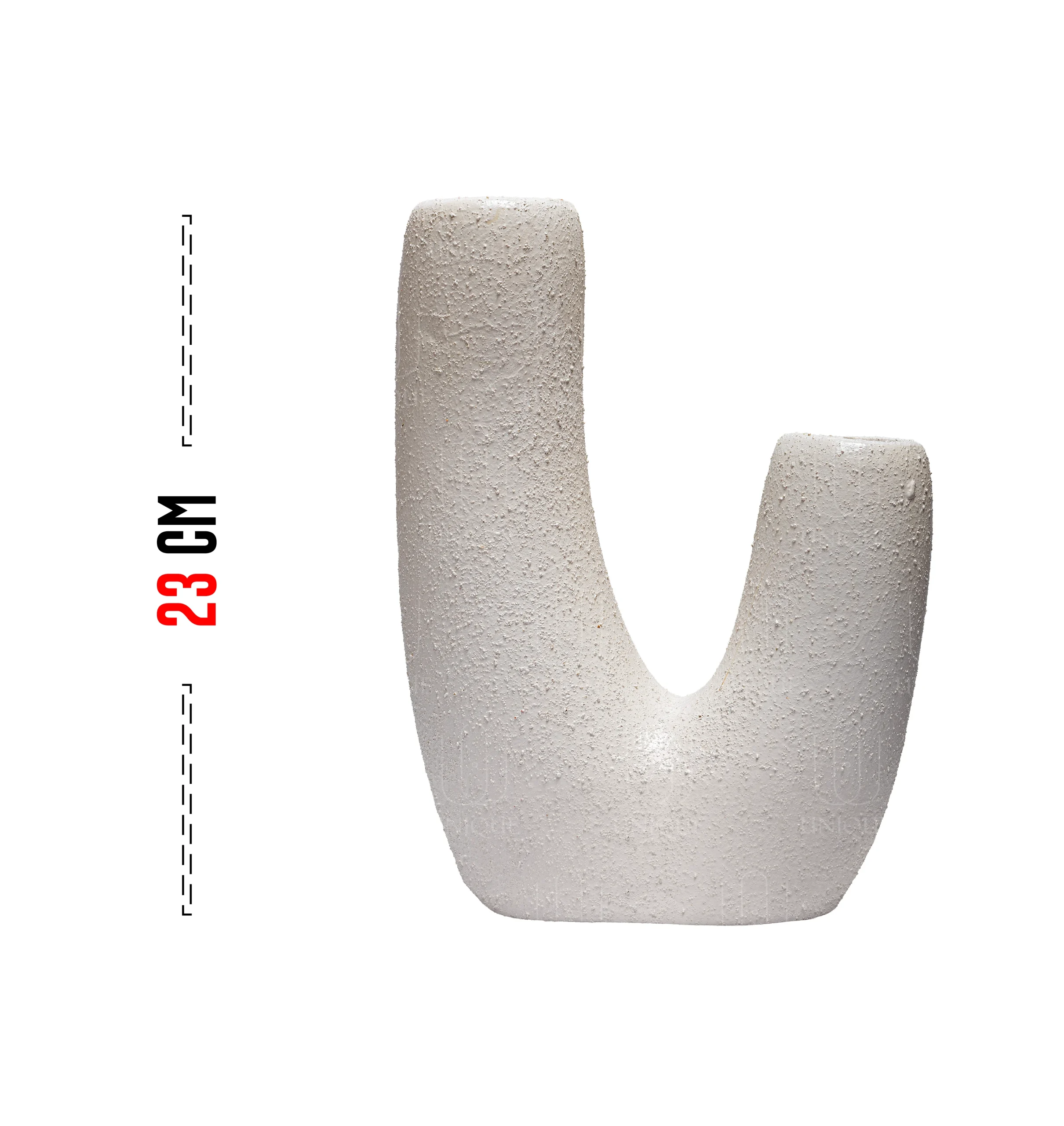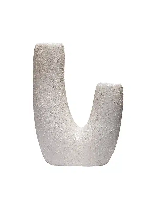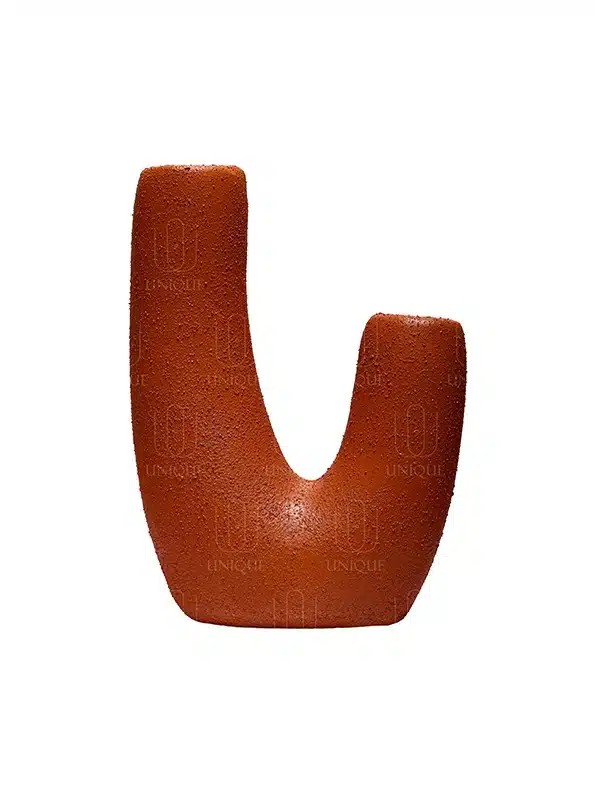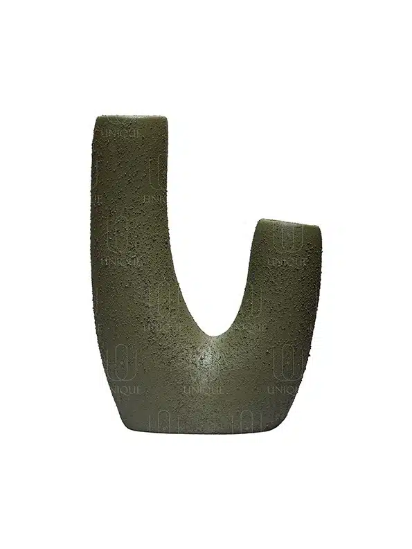 A captivating contemporary art vase, defined by its minimalist and elegant sculptural design in the shape of a curved ‘U’ or an abstract horseshoe. One side gently rises higher than the other, creating a dynamic yet harmonious silhouette. Its textured, granular surface enhances its visual depth and modern appeal. More than just a vase, this piece is a refined work of art—ideal for introducing a sense of serene modernity and abstract elegance to any interior, capturing attention with its understated yet innovative form.